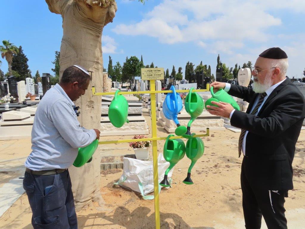 הרב דהן הודה בהערכה רבה לכל עובדי בית העלמין על המסירות בעבודות השטח לשיפור וחזות בית העלמין.