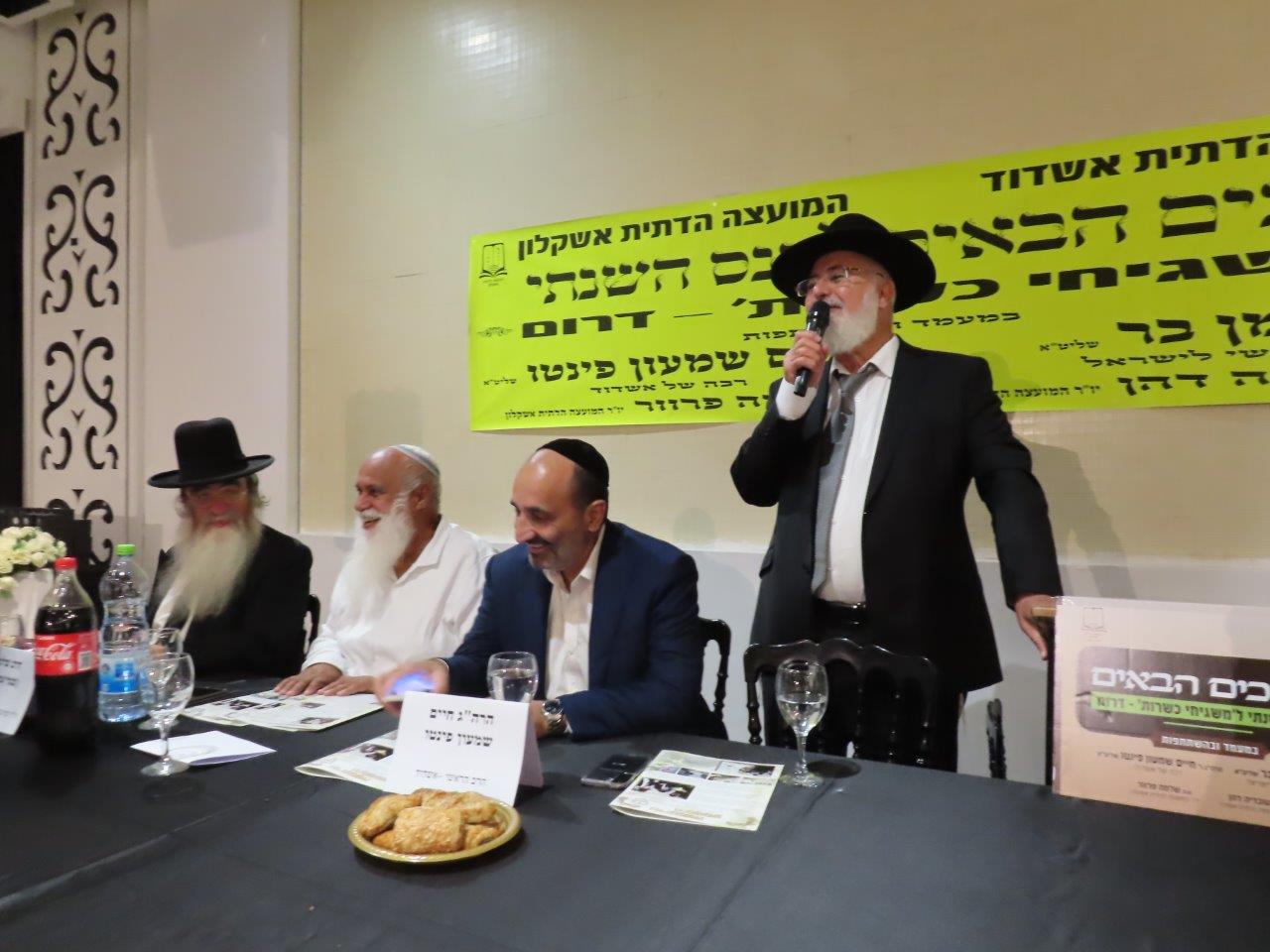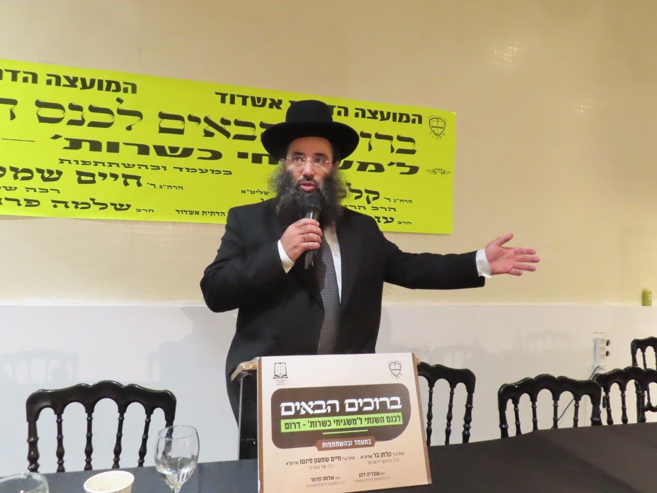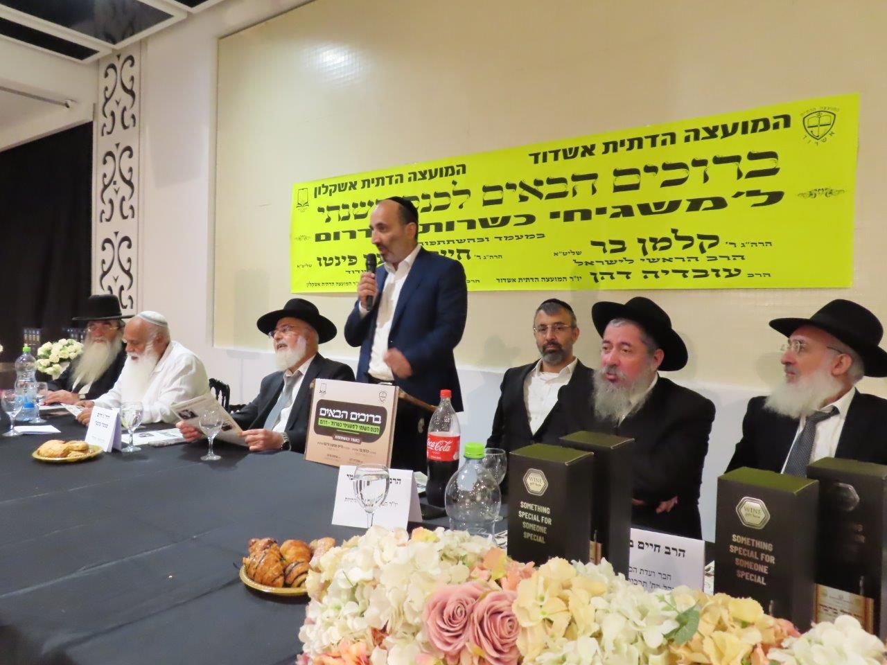 שיבח את העיר אשדוד שאין מצב שבדצ"ים נותנים כשרות מבחוץ וזה אודות לעבודה הטובה של מחלקת הכשרות כאן, ב"ה אשדוד מובילה בהרבה דברים טובים ואני כאן אומר לכם – ישר כח.