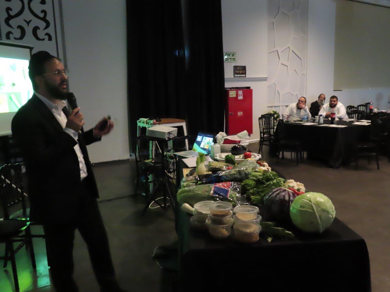במהלך ההרצאה, המשתתפים צפו במצגת מפורטת במשך כשעה על הימצאותם של החרקים גם בירק מהדרין, אומנם הרבה פחות מהגידול הרגיל, בדבריו הסביר היטב כיצד ניתן להסיר את החרקים בשטיפה והשריית העלים עם סבון. כמו כן יש ירקות שהבדיקות שם דורשות אחריות גדולה יותר כמו הכרוב בצל ירוק ויש סוגי ירק שלא ניתן כלל להכשירם מחמת ריבוי החרקים הנמצאים בין עליו הקטנים.