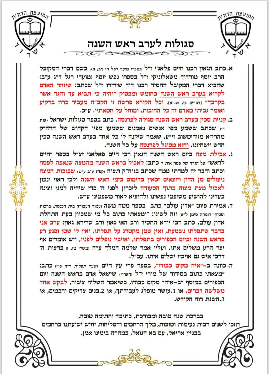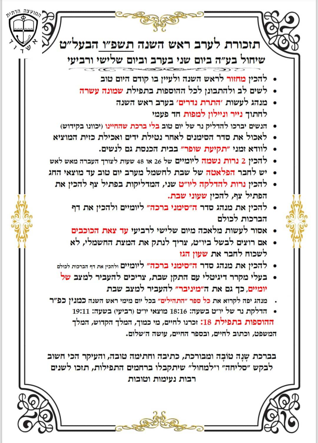 מה צריך להכין לקראת יום "ראש השנה"? מה הסגולות לערב ראש השנה? המועצה הדתית הכינה באופן מסודר לפניכם, ניתן להוריד ולהדפיס!