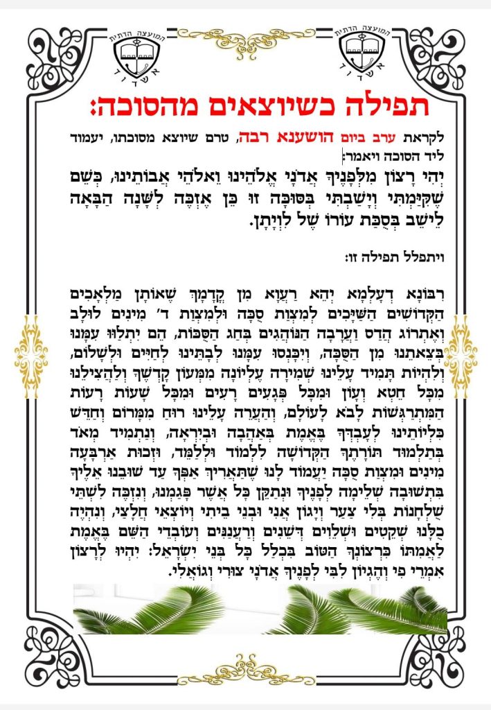 המועצה הדתית פרסמה הלכות, סגולות ומנהגים להושענא רבא ושמחת תורה