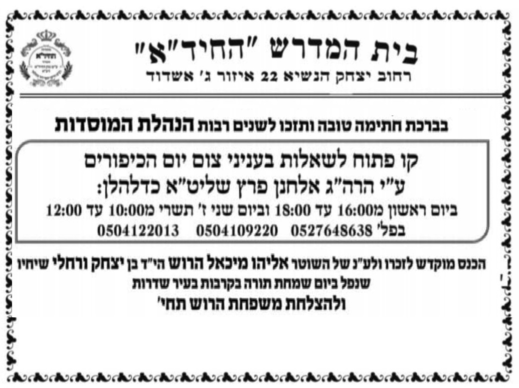 לציון שובם של החטופים ב"ה: בסיוע המועצה הדתית יתקיים מעמד "הקפות שניות" מרכזית במוצאי חג שמחת תורה כב' בתשרי 14.10 במגרש הענק רחוב פתח תקוה