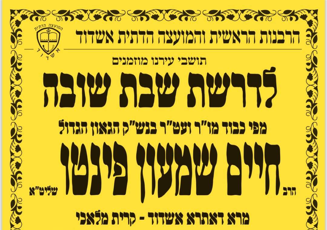"דרשת שבת שובה" מפי המרא דאתרא הגה"צ רבי חיים שמעון פינטו שליט"א בשבת הקרובה 'וילך' – ה' בתשרי 27.9 – המודעה בפנים